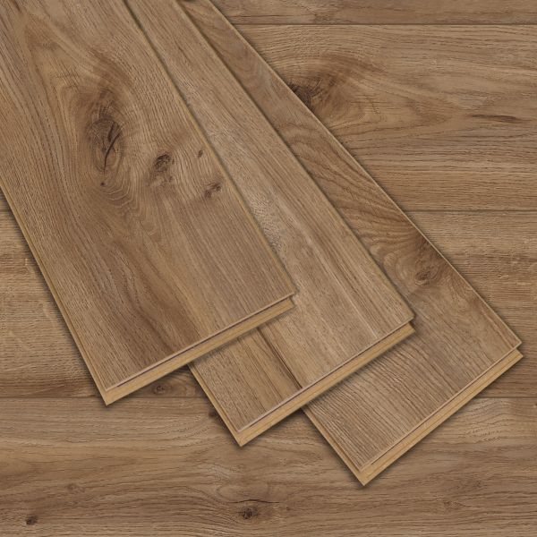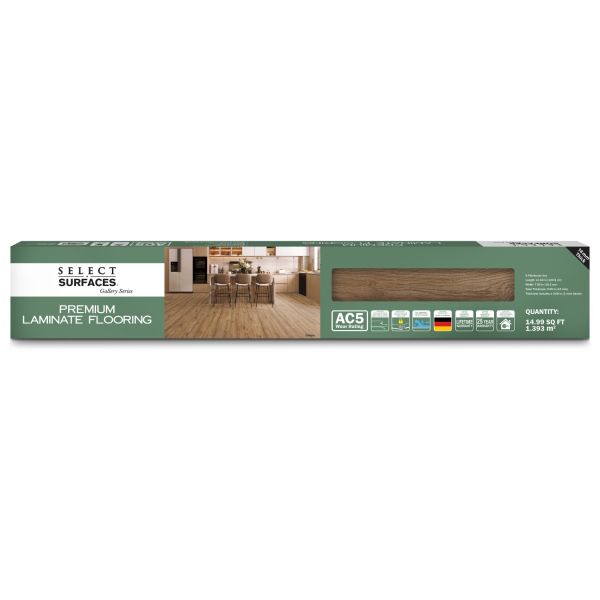 El piso laminado Dakota de Select Surfaces® es de un cálido tono medio de café-miel con matices dorados que iluminan el espacio, creando una sensación natural y acogedora. Los suaves patrones en su veteado, sutiles nudos y delicados toques luminosos añaden textura y profundidad, logrando un acabado atemporal y luminoso. El equilibrio de sus tonos combina a la perfección con todo estilo, desde moderno hasta rústico. Este suelo ofrece calidez y carácter a toda habitación.